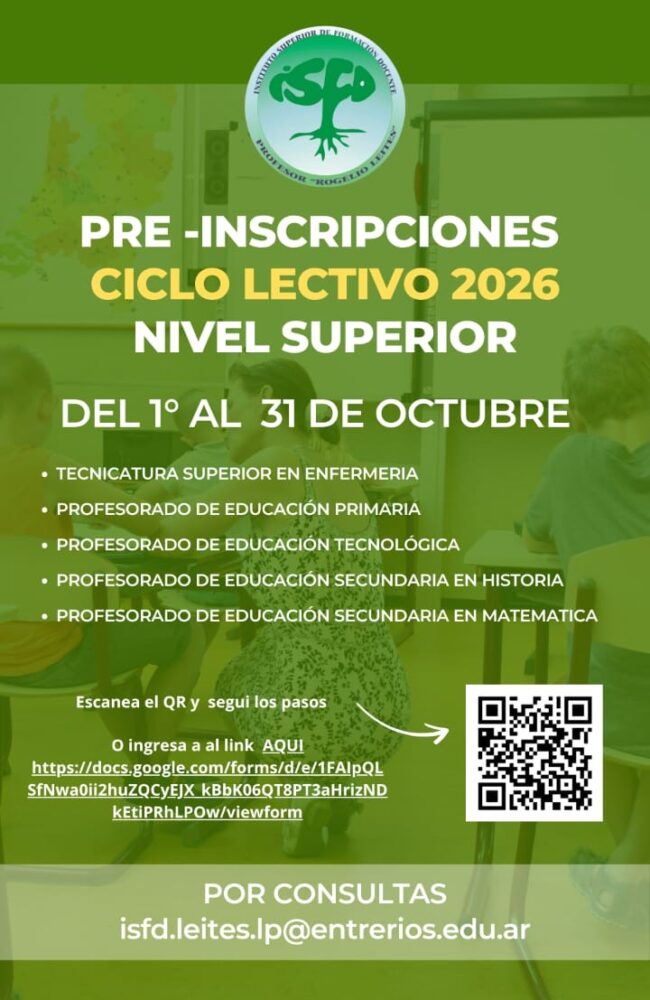 La Paz, 02 de octubre de 2025. El ISFD Prof. Rogelio Leites informa a los interesados que se encuentra expuesto…